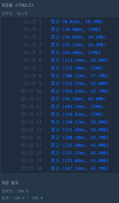 set_sum = elements[idx1] <-- elements의 첫번째 배열을 check_set에 넣어놓고, 다음 for문에서 idx1이 0이니까 idx1+1부터 elements + idx1을 도는데, 처음 [7,9,1,1,4] 중 7이 check_set안에 저장되어있고, idx2%len_elements를 0이기 때문에 같은 수인디 7이 저장되지만 set()이기 때문에 중복제거가 될 것이다. 이것이 반복되면서 돌면 중복제거하면서 저장된 합이 check_set에 남게 되고 이것의 길이를 반환하면 정답이 되게 된다. 위에 코드보다 확실히 빨라진 걸 볼 수 있다.