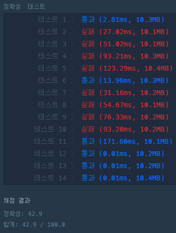 코드를 다 짜고 제출을 했는 데 실패가 나길래 봤더니... check_arr를 초기화를 안 시켜줘서 계속 쌓인 상태로 비교하다보니 실패가 뜬 거였다... 바로 이 부분에서 삽집을... 아 이거 뭐 참...ㅋㅋㅋ