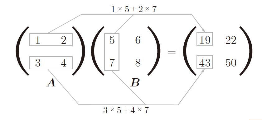 위 이미지를 보면 A 열의 값과 B의 행의 값을 차례로 곱하고 더한 값이 배열의 곱의 값이 된다.