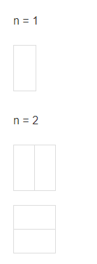 n = 3을 보면 n = 2 값에서 1x2 오른쪽에 추가 되는 것과 2x1 2개 왼쪽에 붙거나의 경우의 수가 나오게 되는 데